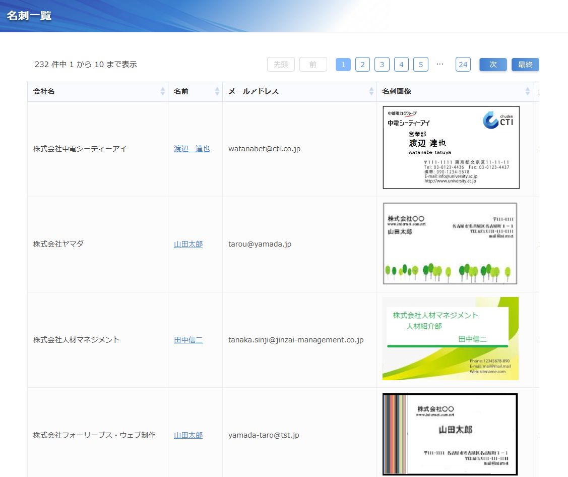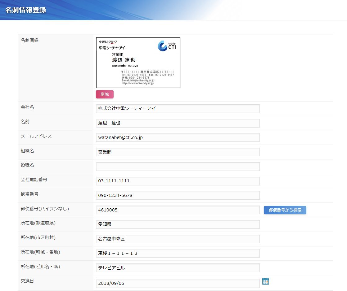 名刺交換などで受け取った名刺情報を登録・管理するアプリです。登録した情報は、任意のユーザ間で共有し、有効活用することができます。