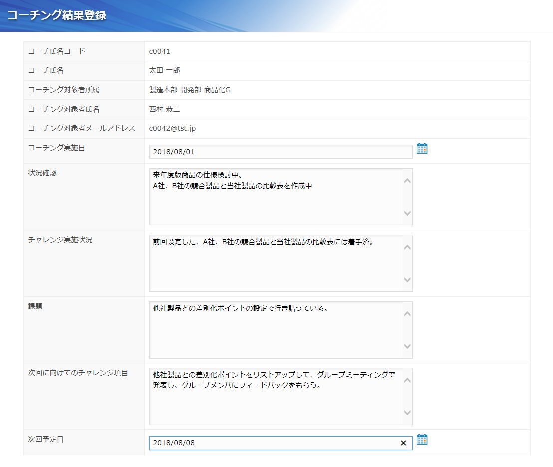 社内で行うコーチングの実施履歴を管理するアプリです。