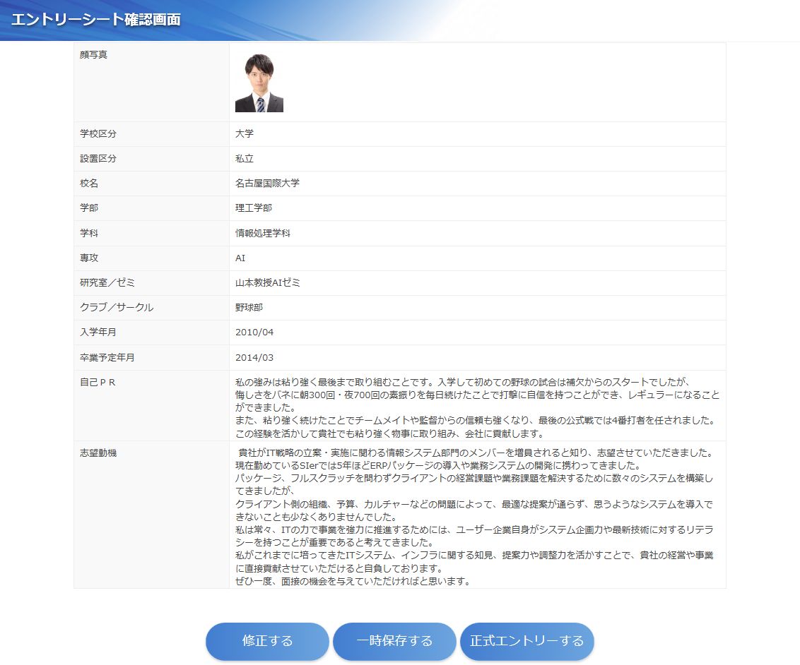応募者には個別にエントリー用のログインIDが付与されるため、作成したエントリーシートの閲覧、修正などは本人のみ可能です。