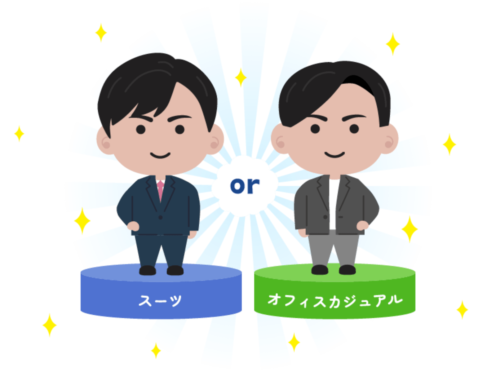 服装についても、スーツの人もいればオフィスカジュアルの人もいるよ。