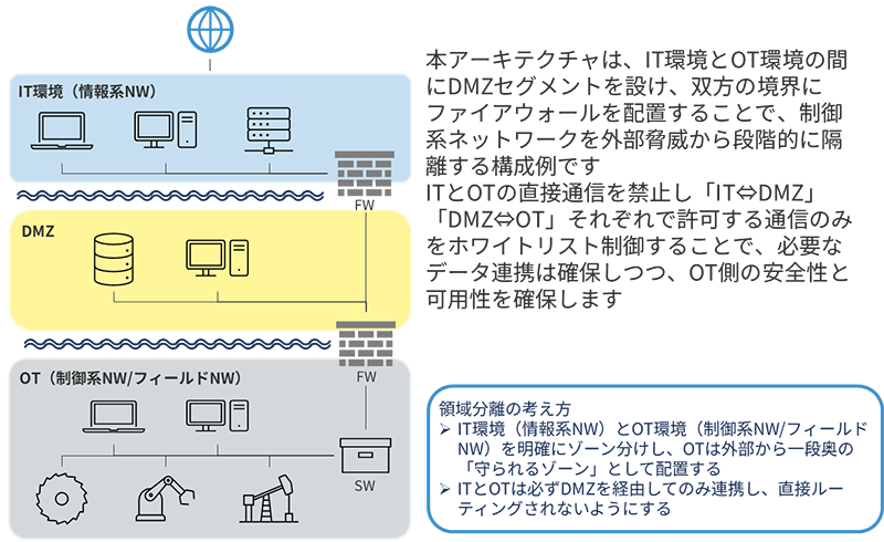 Recommended IT–OT Segmentation ArchitectureIT–OT境界の推奨分離構成(例)