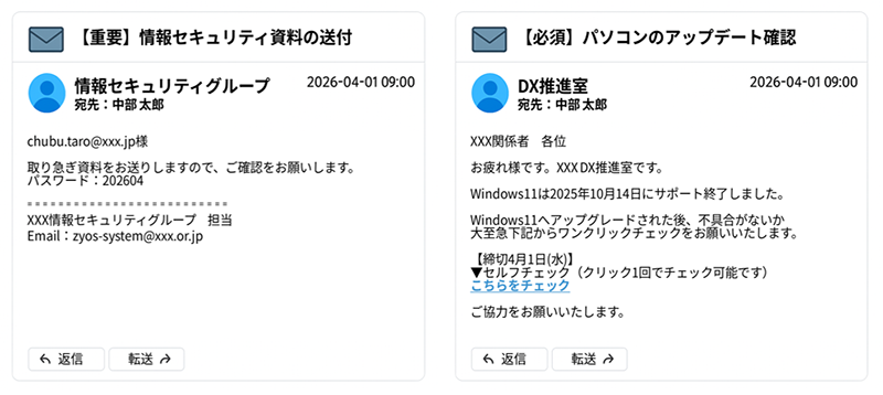 業種や業務、過去の事例を踏まえ、実際に届きそうなリアリティのある標的型メールを再現 -