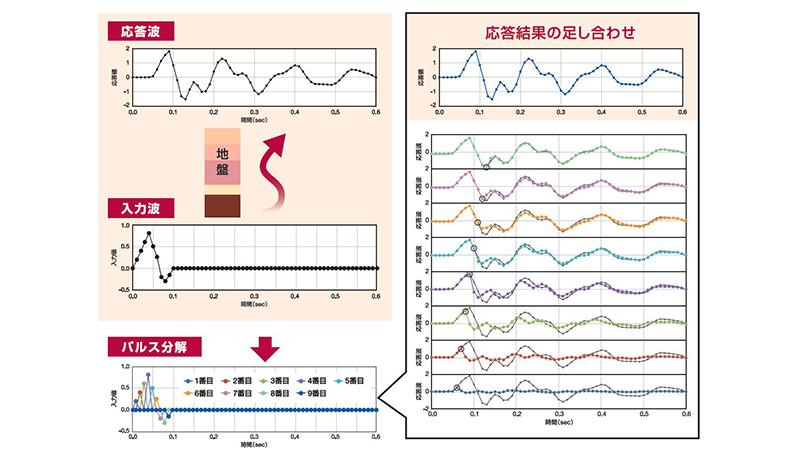 地震波を短時間のパルス波に分解し、順番に解析を行うことで、地盤の非線形変化を反映させることが可能です。この方法により、より現実的な揺れの予測ができ、従来の解析方法では得られなかった精度を提供します。
